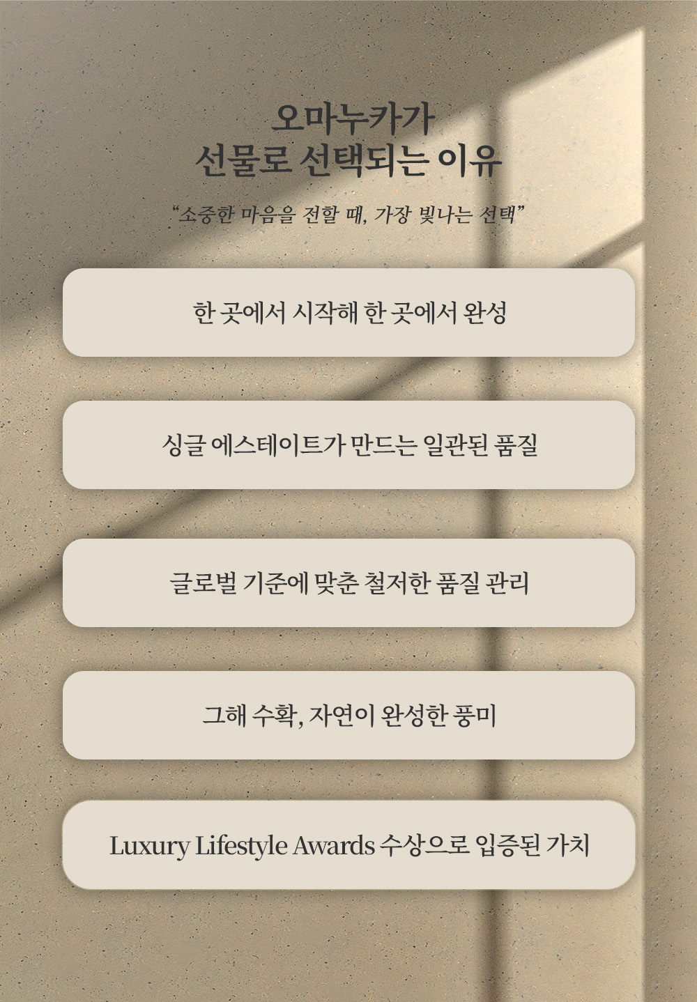 오마누카의 Best Item 으로 구성된 패키지입니다.